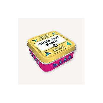 Split the players into teams of two. One player draws a card and holds it to their forehead without reading it. Their teammate picks one of the five names on the card and tries to help their partner guess it as quickly as possible within one minute. If they get the right name fast, they can continue with the other two names on the card or take a new card and continue to play. After one minute, play switches to the next team. The team with the most correct answers wins!
